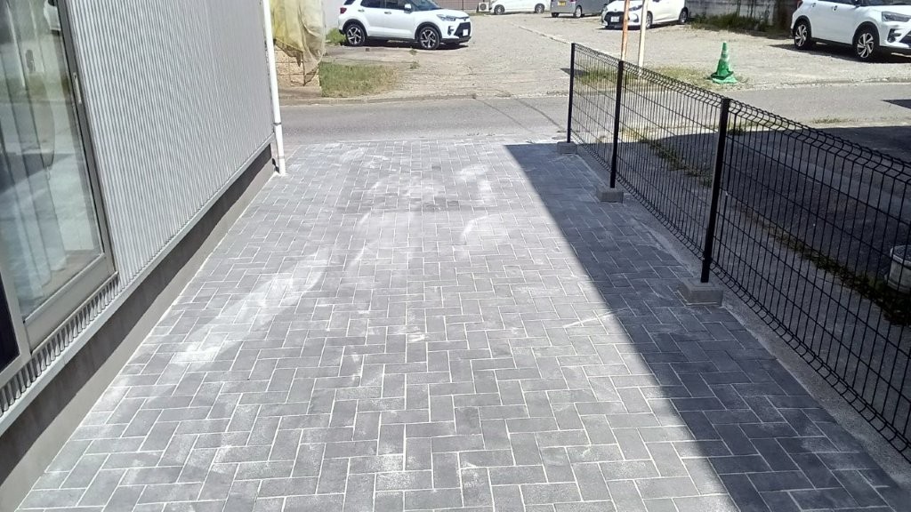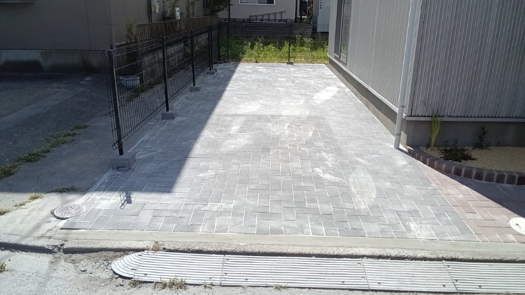 砂利と雑草で使いにくかった場所を、インターロッキングで広々とした駐車スペースに。