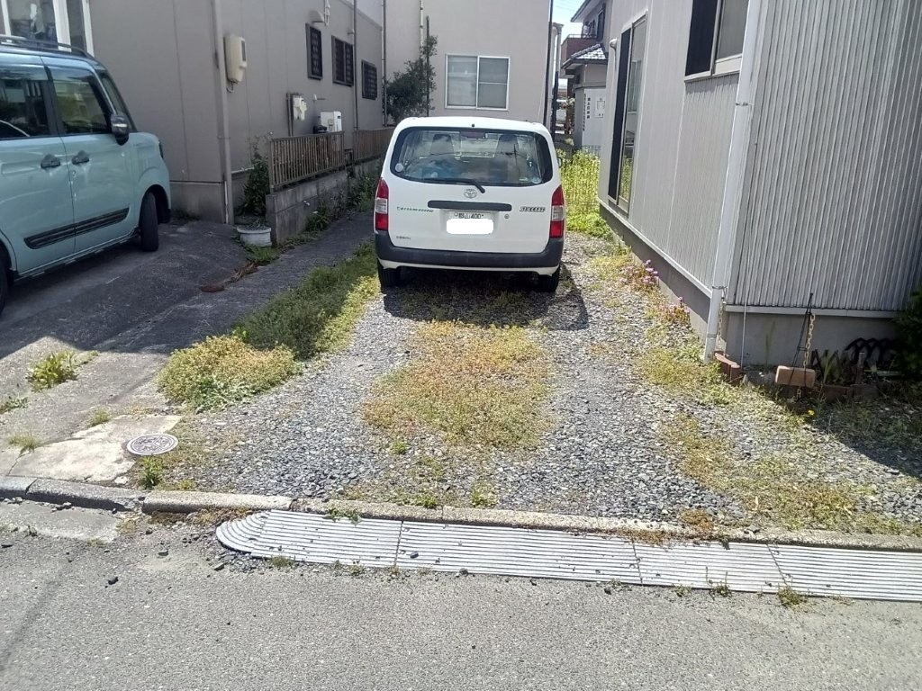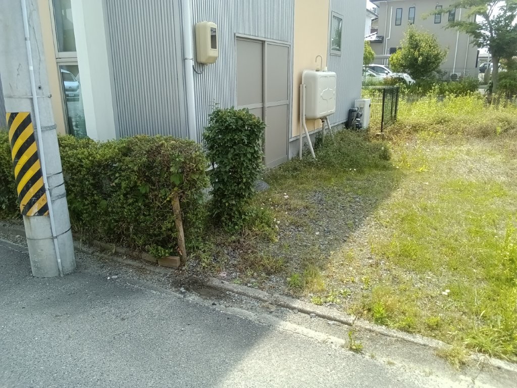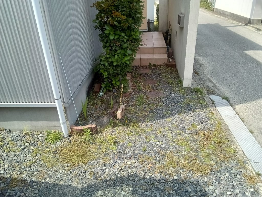 お庭は雑草が生い茂り、駐車スペースも使いにくい状態でした。