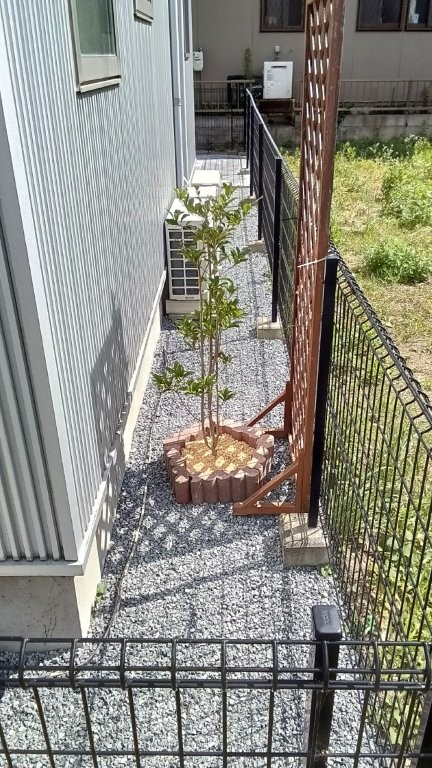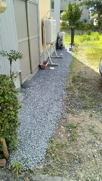 建物周りには、防草シートと砕石を敷いて、面倒だった草むしりが一段と楽になりました!