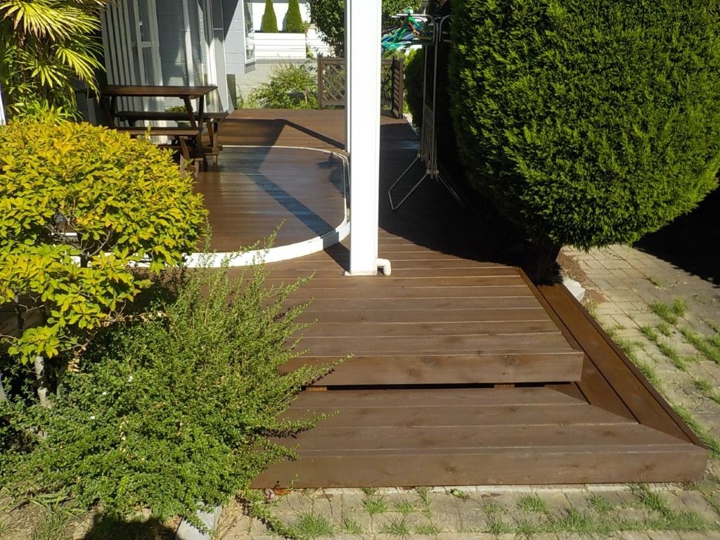 • 庭全体のイメージアップ: 落ち着いた色に塗り替えることで、ウッドデッキが持つ木の温もりが引き立ち、お庭全体が格段に心地よい空間に生まれ変わりました。